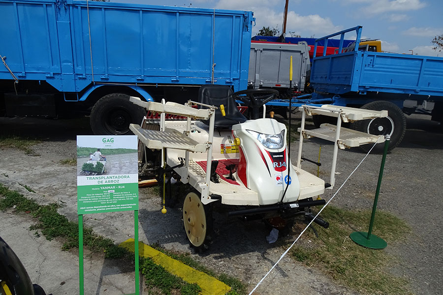 Dijo que se exponen combinadas de pequeño porte para la cosecha del cereal, que son empleadas por los productores individuales y otras más grandes que se emplean en extensas áreas cultivadas, así como carretas, semirremolques, medios para transportar arroz cáscara seco desde los molinos hasta los secadores. Hoy no está completa la tecnología; se sigue importando y también produciendo en Cuba, sobre todo implementos agrícolas, y hay un cronograma de producción y entrega que serán el complemento final.