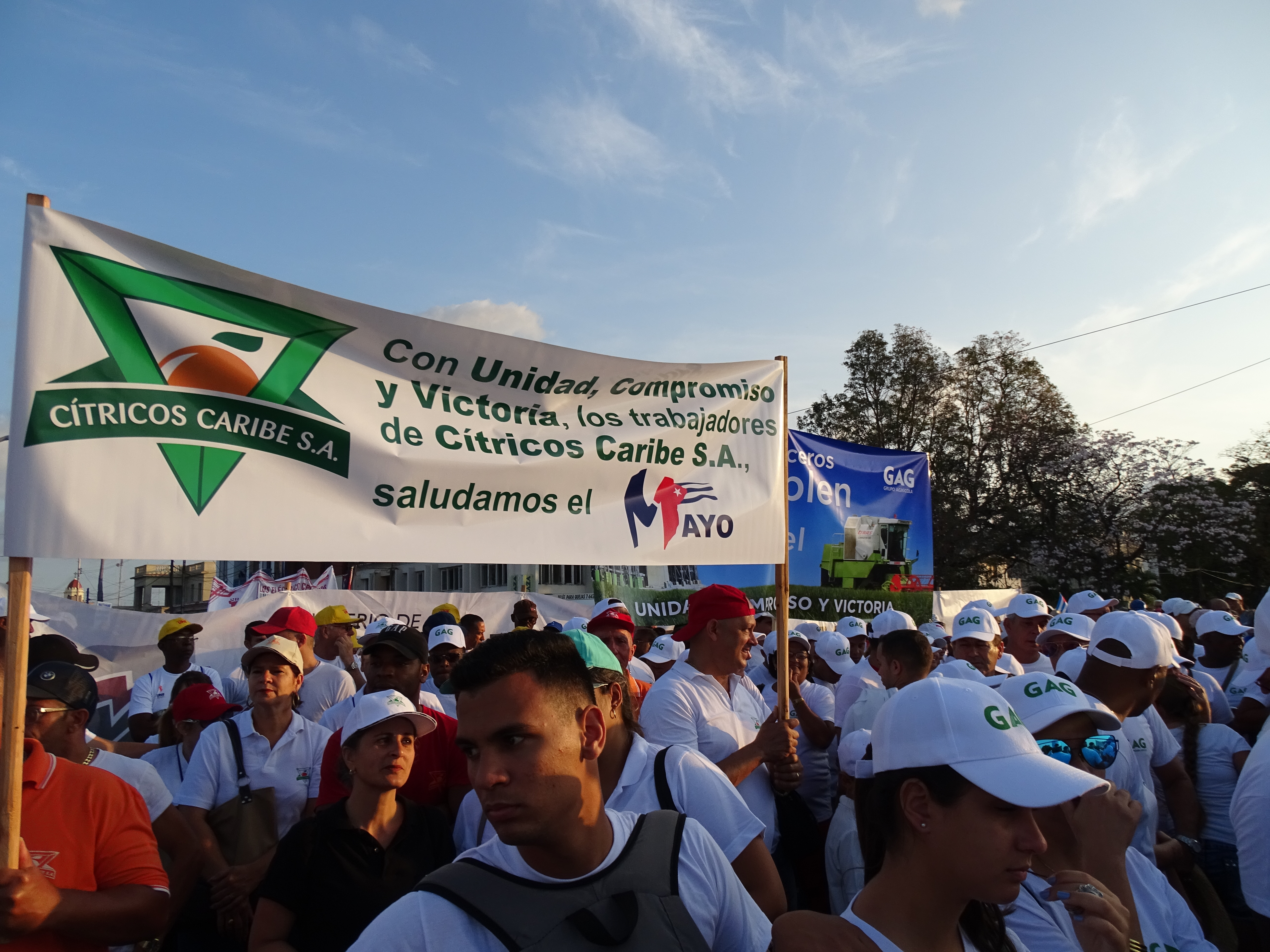Trabajadores del arroz, de Frutas Selectas, Acopio, Cítricos Caribe, la Empresa Comercializadora de Semillas, la de Aseguramiento al Grupo Empresarial, con sus directivos al frente, fueron fieles al legado del Comandante en Jefe Fidel Castro con cada paso que los condujo hasta la Plaza de la Revolución. Y no estuvieron solamente los de La Habana, en cada provincia, comunidad y en cada rincón de este país donde hubo una manifestación de fiesta del proletariado se vieron los agricultores, algunos de los cuales ya habían desarrollado una parte de su jornada laboral, y otros que nuevamente debieron incorporarse a ellas, porque en la agricultura hay tareas que no se detienen, son como Cuba, un país en movimiento.