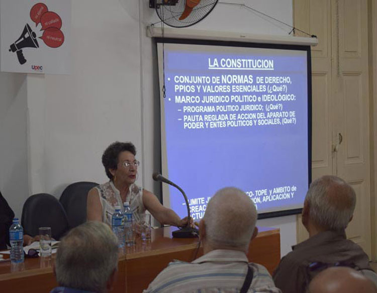 Con la autoridad que le ejerce el magisterio, la vicepresidenta de la Sociedad Cubana de Derecho Constitucional y Administrativo, doctora Martha Prieto Valdés, inició el diálogo con los periodistas donde se aclaró que su objetivo no era “polemizar sino plantear algunas cuestiones técnicas” en relación con el Proyecto de Constitución que por estos días se lleva a consulta popular.