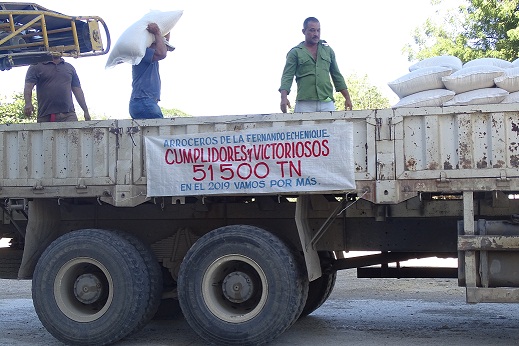 El logro se completó en la Unidad Empresarial de Base Molino Julio Antonio Mella, ubicada en el Consejo Popular El Chungo, desde donde partieron en caravana trabajadores y miembros del consejo de dirección de la empresa, escoltando el vehículo que transportaba los sacos que completaron la cifra antes citada.