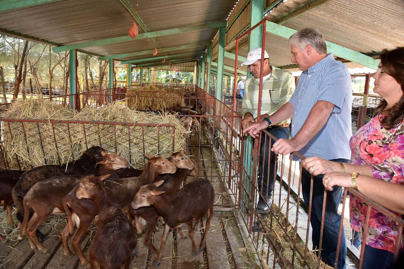 Acompañado por Deivy Pérez Martín, primera secretaria del Partido en Sancti Spíritus; Teresita Romero Rodríguez, presidenta de la Asamblea Provincial del Poder Popular, y Gustavo Rodríguez Rollero, ministro de la Agricultura, el Presidente de los Consejos de Estado y de Ministros también visitó una fábrica de pienso criollo; crías en tarima de ganado ovino y caprino; el Pastoreo 32, de la UEB Botijuela, uno de 13 que han sido rescatados de los flagelos del marabú, y un lote arrocero en la UBPC Sur del Jíbaro.