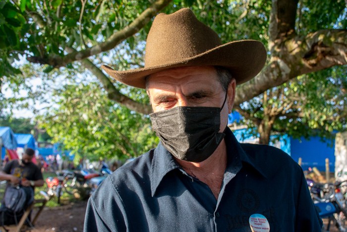 Rubén Pérez (con camisa a cuadros) aportó como sus otros compañeros a la alimentación de la comunidad Los Pinos.